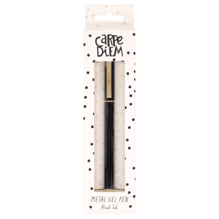 Scribble. Cross. Tick. Liven up your everyday writing with our bold, premium gel pens. Our premium gel pens are the perfect present for someone who's obsessed with stationery. Featuring classic black gel ink, a gold metal clip and debossed branding writing out your daily notes will never be boring! These pens are compatible with standard parker pen refills. People expect more from Pukka Pad products and that's what they get. Pen Sub-Brand & Product Family: Carpe Diem Metal; Pen Type: Gel Pen; Pen Style: Stick; Pen Tip Type: Conical.