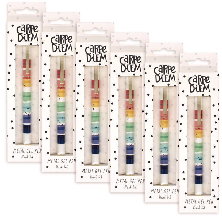 Carpe Diem Metal Gel Pen, Stick, Medium 0.7 mm, Black Ink, Color Wash Multicolor Barrel, 6/Pack
