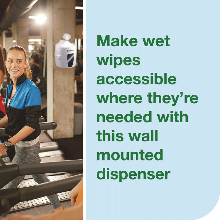 Make wet wipes accessible where they're needed with this wall mounted dispenser. This centerfeed dispenser stores up to 2,500 wet wipes and is easy to refill, saving staff time. The dispenser's fresh white finish accents modern decor and the built-in window allows you to display marketing material. Compatible with Everwipe by Tork W12 refills. Towels Dispensers Type: Wet Wipes; Dispenser Capacity (text): 2,500 Wet Wipes; Material(s): Plastic; Color(s): White.