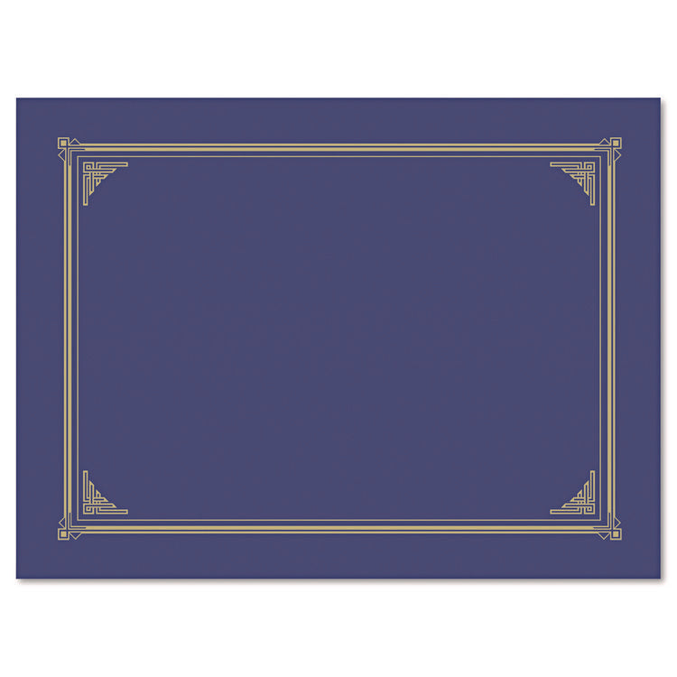 The perfect way to hold and frame precious documents and certificates. Premium 80-lb linen textured cover stock with elegant gold-foil design adds a touch of elegance to any important paper. Easy to use-slip the full-size certificate into die cut to hold 8 x 11 certificates, or A4 and 8 x 10 photos and documents. Also great as photo holders, invitation folders, menus and more. Color(s): Blue Metallic; Width: 12.5"; Height: 9.75"; Insert Size: 8.5 x 11; 8 x 10; A4.