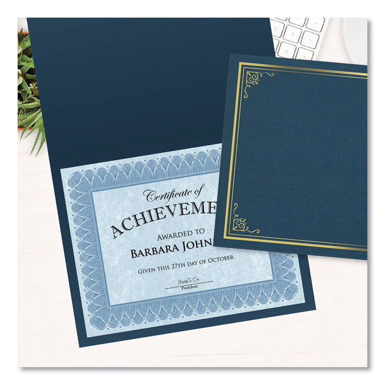 Certificate/Document Cover, 9.75' x 12.5", Navy With Gold Foil, 5/Pack