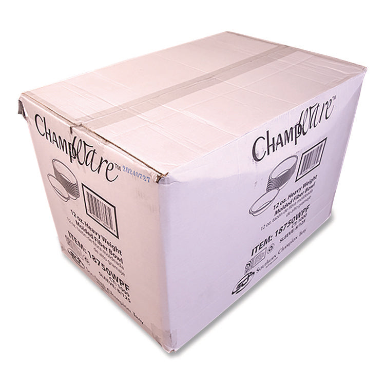 ChampWare Molded Fiber Tableware, Bowl, 12 oz, White, 125/Sleeve, 8 Sleeves/Carton