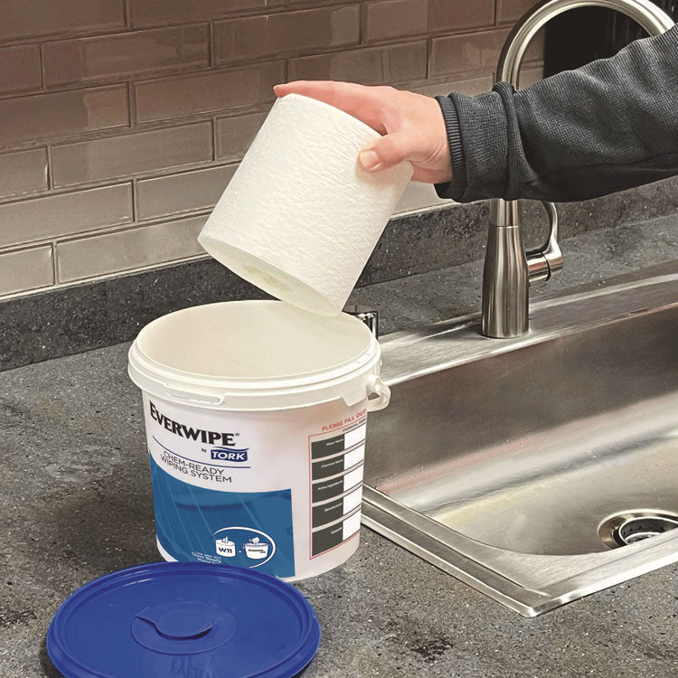 Save time and improve surface cleanliness with these Everwipe by Tork Chem-Ready Wiping Rolls. Simply place the roll of dry wipes into the compatible bucket and add your preferred water-based cleaning solution, sanitizer or disinfectant cleaning chemical. Chem-Ready provides closed system cleaning that's more hygienic, safer and simpler than traditional open bucket or spray bottle systems. Plus, these dry wipes are engineered with small pockets to effectively scrub and trap dirt. Compatible with the Everwipe by Tork W11 dispenser. Towel/Wipe Type: Dry Wipes; Application: General Purpose; Applicable Material: Hard Nonporous Surfaces; Material(s): Nonwoven.