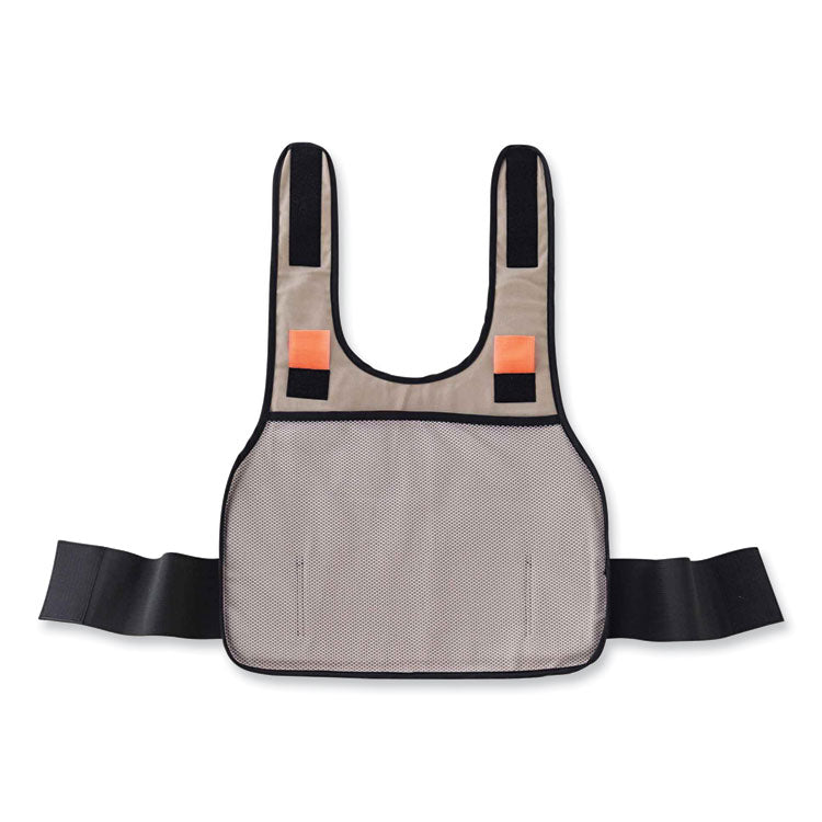 The Chill-Its 6235 Standard Phase Change Cooling Vest is made to house phase change cooling packs to help keep workers cooler, safer and more productive. The phase change cooling material maintains a 64°F (18°C) temperature for up to four hours when activated. Made of a comfortable cotton blend fabric, this vest features adjustable hook-and-loop closures at the shoulders and waist to provide a customized comfortable fit. Apparel Type: Cooling Vest; Material(s): Cotton; Color(s): Khaki; Color Family: Brown.