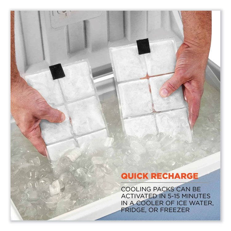 Designed to be thirty to sixty percent lighter weight than other cooling vests on the market, the Chill-Its Lightweight Phase Change Cooling Vest helps to keep workers cooler, safer and more productive. Phase change cooling material maintains a 64°F/18°C temperature for up to two hours when activated. Constructed of a polyester cotton blend fabric, the vest's adjustable hook-and-loop closures around the waist provide a customized fit for different body types. The heavy-duty front zipper makes for easy on/off, while the two front zippered pockets can be used to store small accessories. Simply place the four removable packs in a cooler of ice water for five minutes, freezer for eight minutes, refrigerator for 12 minutes, or near an air conditioner for one hour. The cooling pack should be washed by hand with a mild detergent and warm water. Do not machine wash or machine dry. The fabric vest is hand washable with mild soap. Apparel Type: Cooling Vest; Material(s): Cotton; Polyester; Color(s): Black; Color Family: Black.
