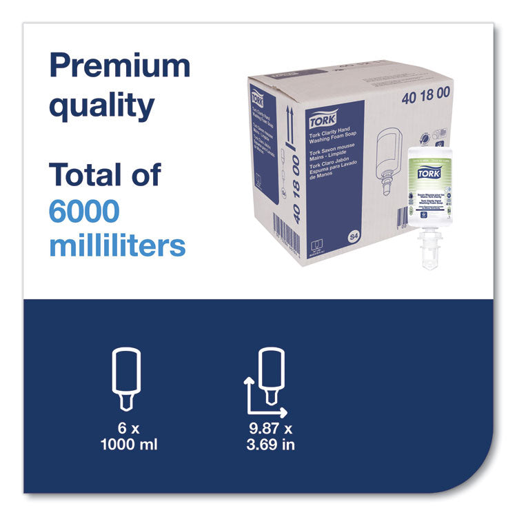 As 99% of ingredients are of natural origin (Clarity formulation following the ISO16128), Tork Clarity Hand Soap Foam helps to support sustainable practices. This biodegradable formula (based on third-party lab test according to OECD301B) is gentle to the skin. It is suitable for use with Tork S4 skincare dispensers and has an easy-to-use design. The sealed bottle helps promote good hygiene and helps to reduce the risk of cross-contamination. The bottle also collapses as the contents are used, helping to reduce product waste. Soap Type: Foam; Volume Capacity: 1 L; Scent: Unscented; Personal Soaps Application: Hand.