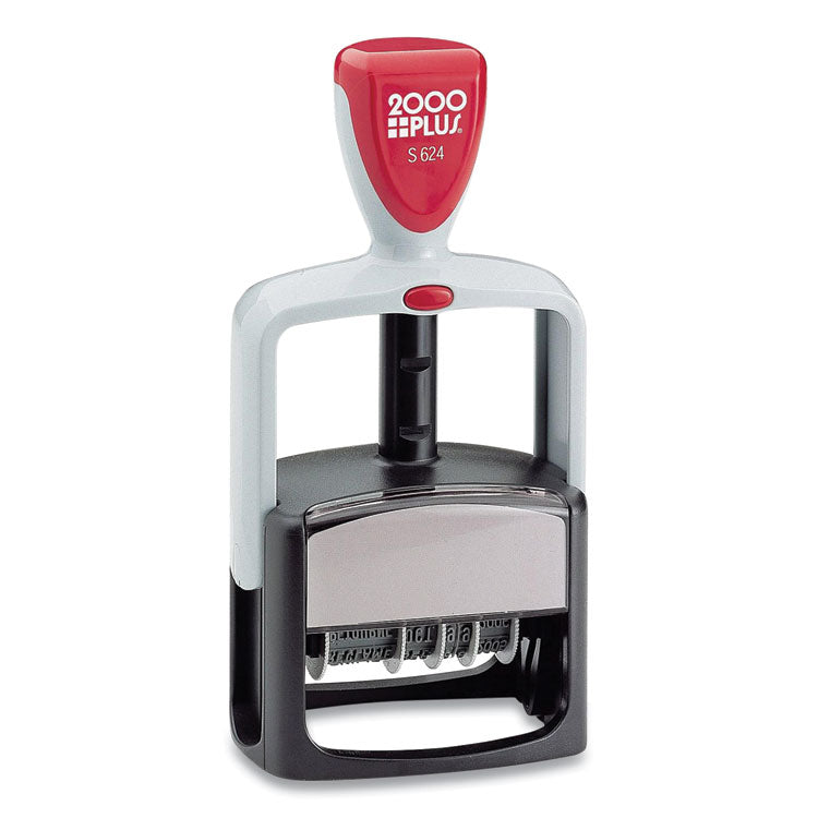 Add dates and important messages to office memos, invoices and receipts. Simply turn the dials to select the proper message or date for your documents. Months, days and five-year band. Includes phrases on year band: REC'D, ENT'D, ANS'D, PAID, SHIP'D, CHG'D, RET'D, BAL, CANC, C.O.D., FILED, and FILLED. Stamp lasts for thousands of impressions. Can be re-inked with 2000 Plus® self-inking refill ink. Stamp Type: Message Dater; Message(s): REC'D; ENT'D; ANS'D; PAID; SHIP'D; CHG'D; RET'D; BAL; CANC; C.O.D.; FILED; FILLED; Ink Types: Self-Inking; Impression Width: 1.75".