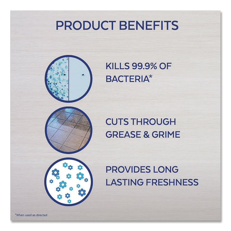 Help protect your workplace against viruses and bacteria with the versatile, concentrated Lysol® Pourable Multi-Surface Cleaner. When used as directed, this broad-spectrum disinfectant kills germs, including cold and flu viruses, RSV, E. coli, Salmonella, and the virus that causes COVID-19, when used at full strength or diluted on hard, non-porous surfaces. Give cleaning crews the ability to cut through tough grease, grime, soap scum, and daily messes with a multi-surface formula that works in spray bottles and mop buckets and can be used without dilution. Clean high-touch surfaces in breakrooms, classrooms, guest and resident rooms, manufacturing areas, and workspaces with a disinfectant, restroom cleaner, and floor cleaner in one. Deliver a pleasant scent in the area where it is used. Application: Disinfectant/Cleaner; Applicable Material: Hard, Non-Porous Surfaces; Chemical Compound: n-Alkyl (C14 50%, C12 40%, C16 10%) Dimethyl Benzyl Ammonium Chloride; Dirt Types: Bacteria; Dust; Germs; Grease; Grime; Oil-Based Soil; Organic Matter; Smoke Film; Soap Scum; Water-Based Soil.
