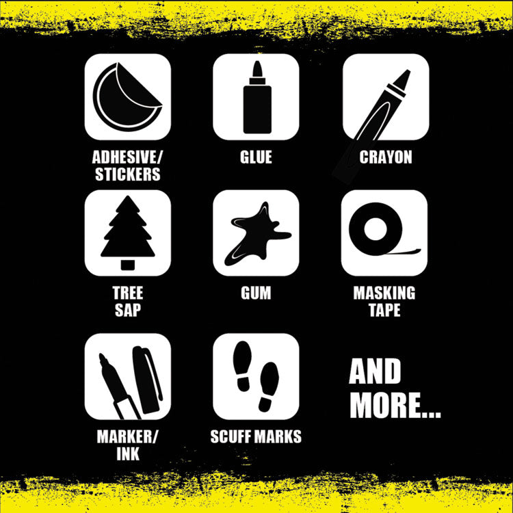 Harness the cleaning power of Goo Gone® in a convenient wipe. Eliminate your sticky, gooey, gummy problems without harming your surface. The gentle, non-abrasive formula is safe for daily use. Safe for use on latex painted walls, wallpaper, wood flooring and furniture, laminate flooring and countertops, carpet, ceramic tile, glass, stainless steel and granite. Tough task wipes are recommended for cleaning scuff marks, masking tape residue, ink spills, paint tree sap, stickers, gum, glue, markers and crayon. Ideal for quick clean-ups, with an easy to take on-the-go canister. Citrus powered cleansing wipes get the job done without damage. Towel/Wipe Type: Pre-Moistened Wipes; Application: Basements; Bathrooms; Kitchens; Living Rooms; Outdoor Patios; Applicable Material: Carpet; Ceramic Flooring; Countertops; Glass; Granite; Laminate; Painted Walls; Stainless Steel; Wood Flooring; Material(s): Nonwoven Fiber.