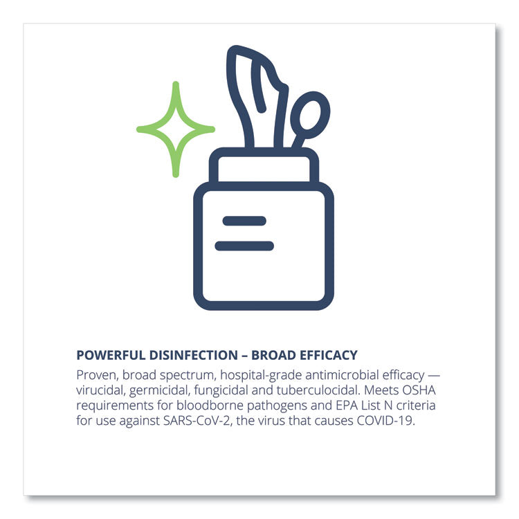 Tough on germs and bacteria but gentle on surfaces, medical devices and users. CleanCide Wipes provide an excellent, highly effective alternative to bleach, alcohol and QUAT-based options. Featuring the best safety rating allowable, their citric-acid-based formula poses the lowest possible risk to employees, patients and your environment. This product has been found to be effective for use against SARS-CoV-2, the cause of the COVID-19 virus. No-rinse cleaning and disinfecting power-do it all in one simple step. Towel/Wipe Type: Disinfecting Wipes; Application: Cleaning; Disinfecting; Applicable Material: Hard Nonporous Surfaces; Material(s): Spunlace Non-Woven Fiber.