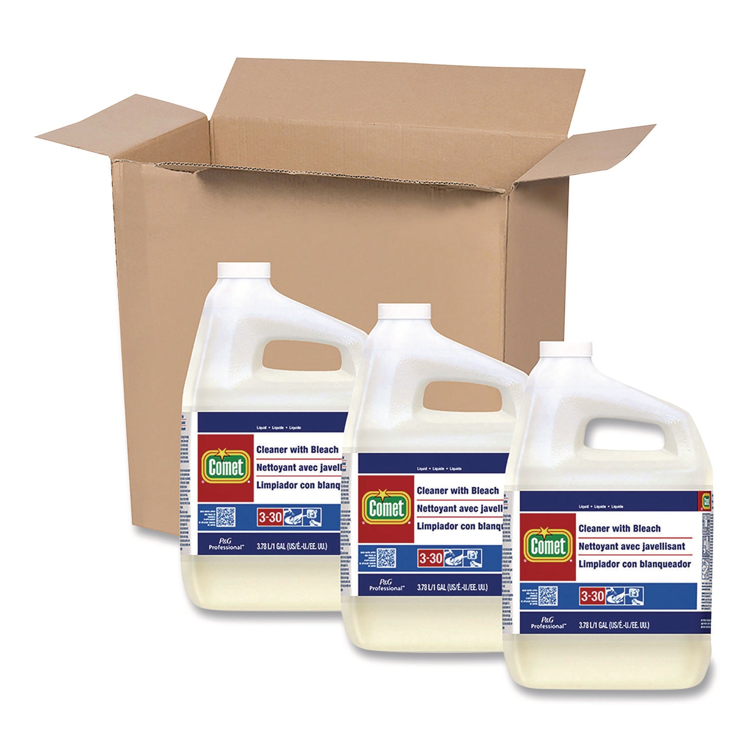 Cleaner With Bleach, Liquid, One Gallon Bottle, 3/carton