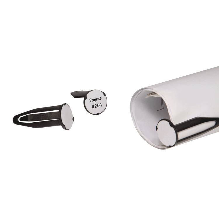 Keep all of your large documents rolled and neatly stocked for future use with the Adir Clips for Plans, Blueprints, Maps and Posters. With this set of clips so you can conveniently store a multitude of documents while keeping the office clean, organized and clutter-free. Expertly crafted of strong plastic, these clips will provide long-term durability and use for years to come. The sturdy construction allows you to efficiently clip and stock all of your files, preventing messy unrolling of documents at any time. Best of all, you can easily label and identify your rolled files. The round cardstock label is 1" in diameter to provide you with plenty of room to write down essential information for easy identification in the future. The labels are glossy on one side and matte on the other, perfect for those who have a preference. Additionally, you can turn them over and use again. You no longer need to unroll your documents to discover what they are. Simply use these ingenious plan clips, label your documents and you have easy sorting and quick identifying. Simple to use, just slip a clip onto the end of a rolled document to keep it tightly secure. A clip on each end will suffice for longer documents. A simple yet effective way to keep your plans organized, these clips are great for public works applications, including building, zoning, planning, water, and fire departments. They're also perfect for architects, engineers, contractors and other professionals who use large documents and would benefit from an efficient, organizational and storage solution. Clip/Clamp Type: Blueprint Clip; Clip/Clamp Trade Size: Small; Clip/Clamp Material(s): Plastic; Clip/Clamp Color(s): Black.
