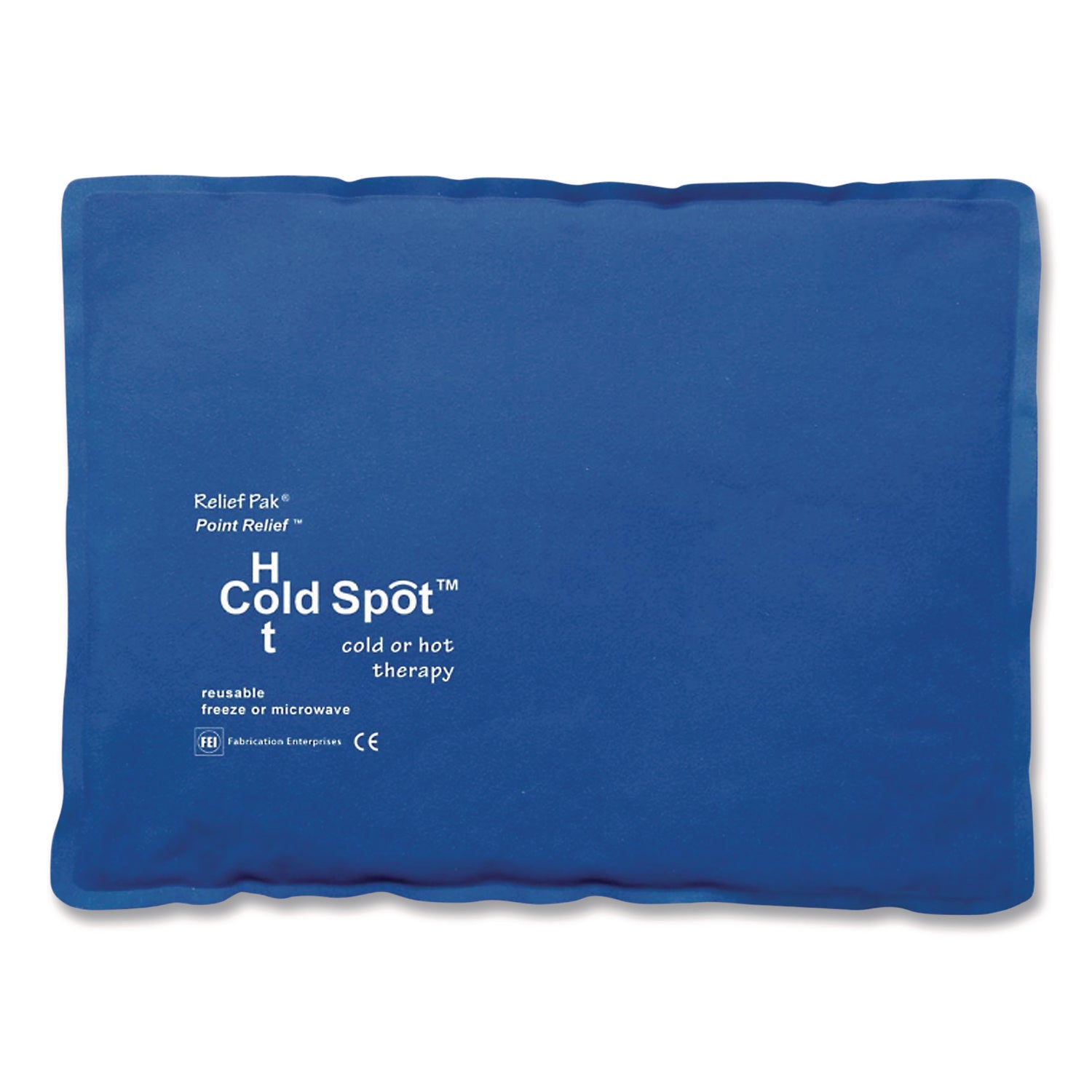 ColdSpot™ reusable packs are a highly effective method of applying cold therapy to a localized area. Bentonite clay fill remains pliable and soft, well below freezing, and it maintains its therapeutic temperature for up to thirty minutes. Heavy-duty vinyl exterior. Wrap in towel before applying to treatment area. Standard Size—Blue vinyl. Width: 14"; Depth: 11"; Number of Pieces: 1; Description: Reusable Cold Therapy Pack, 14 x 11, Blue Vinyl.