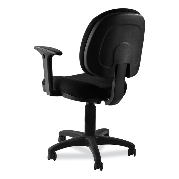 Comfortable and stylish, the Comfort Task Chair with arms from National Public Seating will make your workdays more enjoyable. This fantastic series features a plush padded seat and back, making it extremely comfortable to sit in for long periods of time. The adjustable height armrest is an essential feature of this model. The pneumatic height adjustability also ensures that you'll always be able to find the perfect height. The plastic reinforced backrest and seat make the Comfort Task Series durable and long-lasting, while the sleek and modern design will add a touch of style to any workspace. Additionally, the five industrial-grade casters make it super easy to move around, so you can always be in the perfect position to get your work done. And with the additionally included mushroom glides, you'll be able to swap them with the casters for stationary seating at any time. The Comfort Task Series will make anyone's workday more comfortable and productive. And you can enjoy all that comfort without having to sacrifice style. Recommended Application Area(s): General Office & Task; Seat Color: Black; Back Color: Black; Color Family: Black.