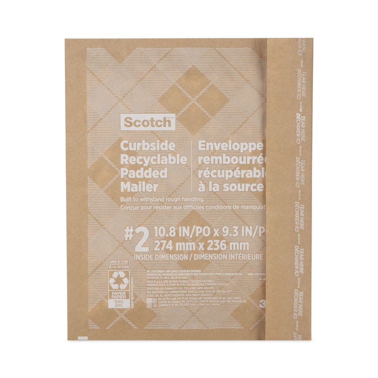 Curbside Recyclable Padded Mailer, #2, Bubble Cushion, Self-Adhesive Closure, 11.25 x 12, Natural Kraft, 100/Carton