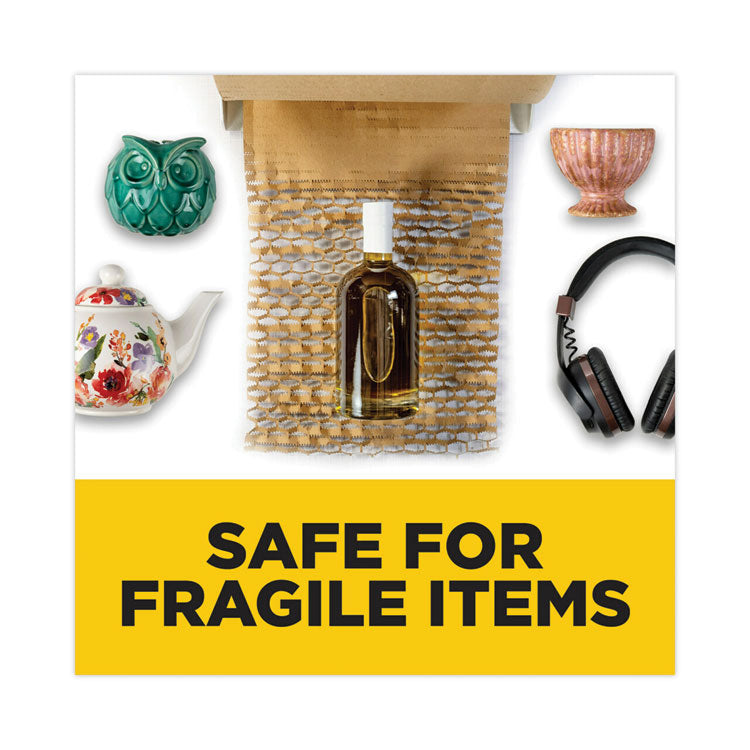 Now you can package your items with the confidence of protection without the guilt of plastic. A sustainable alternative to plastic cushion wrap, Scotch™ Cushion Lock™ Protective Wrap is an expanding paper wrap that offers nested protection to immobilize your most precious items, no matter how bumpy the road gets. Thanks to its unique expanding properties, it only takes about 40% of what's needed of standard plastic bubble wrap to accomplish the same tasks; and because it stores flat and only expands upon use, it takes up approximately 15% of the storage space that plastic cushion wrap would, too. Cushion Lock™ paper cushion wrap is also always 100% recyclable. When you want to pack with confidence, choose Scotch™ Brand. Length: 1,000 ft; Width: 12"; Thickness: 0.05"; Material(s): Paper.