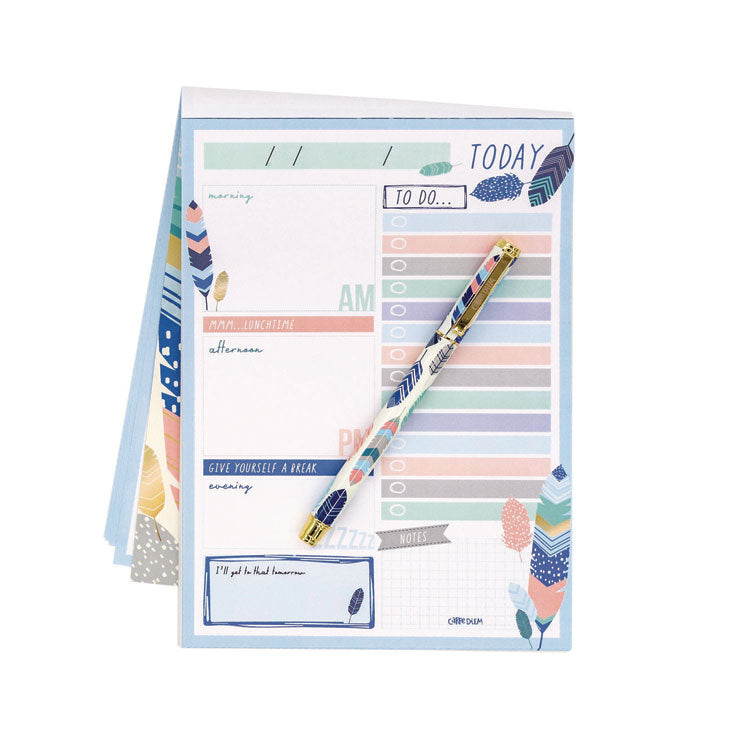 Our daily planner pads measuring 8.3 inches x 5.8 inches are perfect for super-busy schedules, this beautiful planner is here to help you stay on top of things. Keep your day in order with our organizational day format. From a section to write notes, a to-do list, a morning, afternoon and evening schedule and for when your brain is frazzled after a long day an 'I'll get to that tomorrow' section. Featuring 60 tear-off, undated sheets not only will our daily planners help you structure your day but they also look super cute too! People expect more from Pukka Pad products and that's what they get. Dated/Undated: Undated; Calendar Format: Daily; Calendar Spread Format: One Day per Page; Academic Year: No.