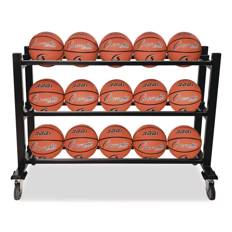 Deluxe Heavy-Duty Basketball Cart, Metal, 220 lb Capacity, 16 x 50.75 x 34.75, Black
