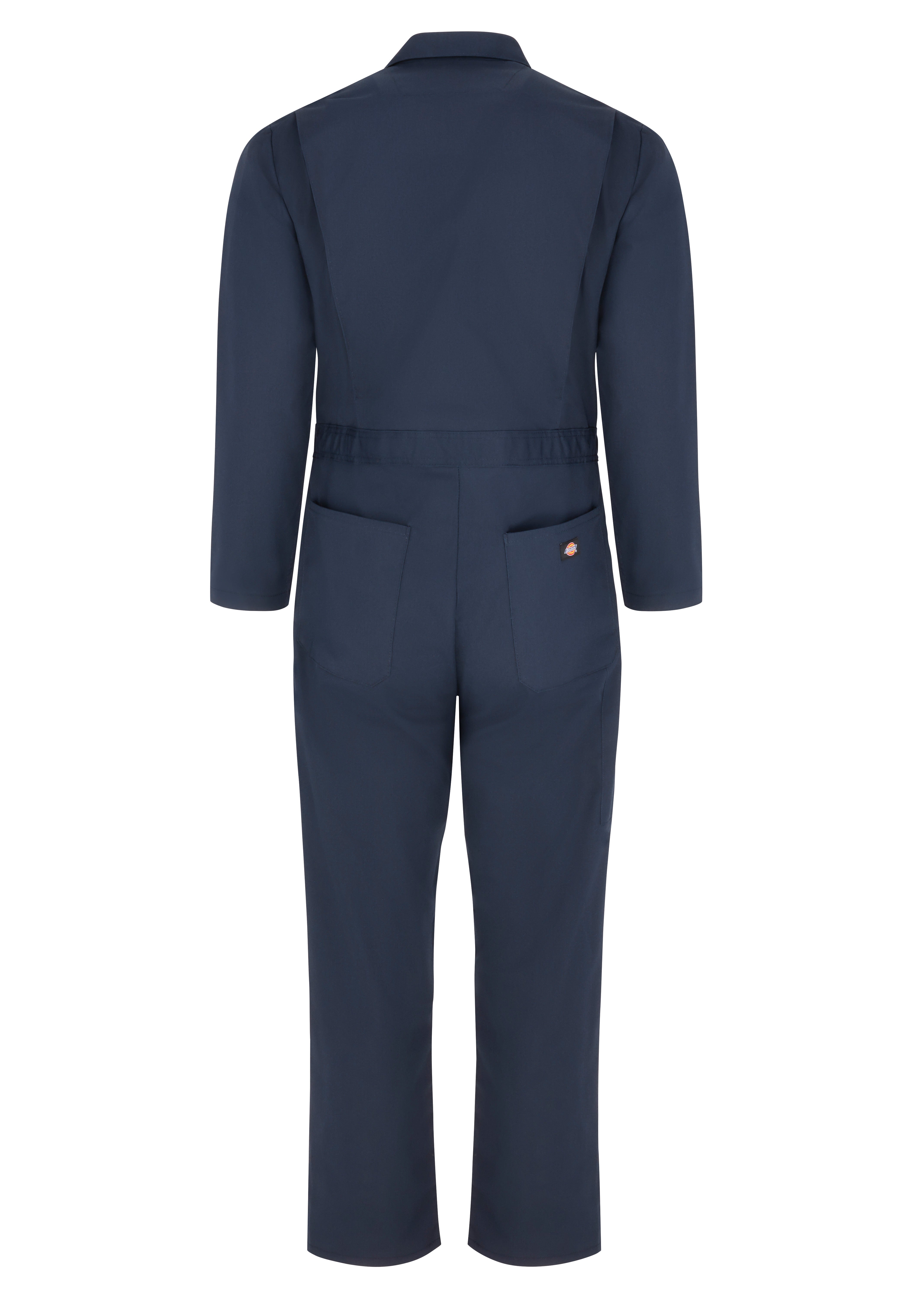 Grease, grime, dirt, insulation—these are just some of the things that stand no chance against Dickies’ Basic Blended Coverall. This coverall handles just about anything your work can throw at it. Durable, yet breathable, polyester/cotton twill resists fading, wrinkles and stains. Heavy-duty, two-way front brass zipper with concealed snaps at neck and waist stays flat. Handy ruler/tool pocket on right leg. Expandable comfort waist with elastic inserts keep you comfortable.