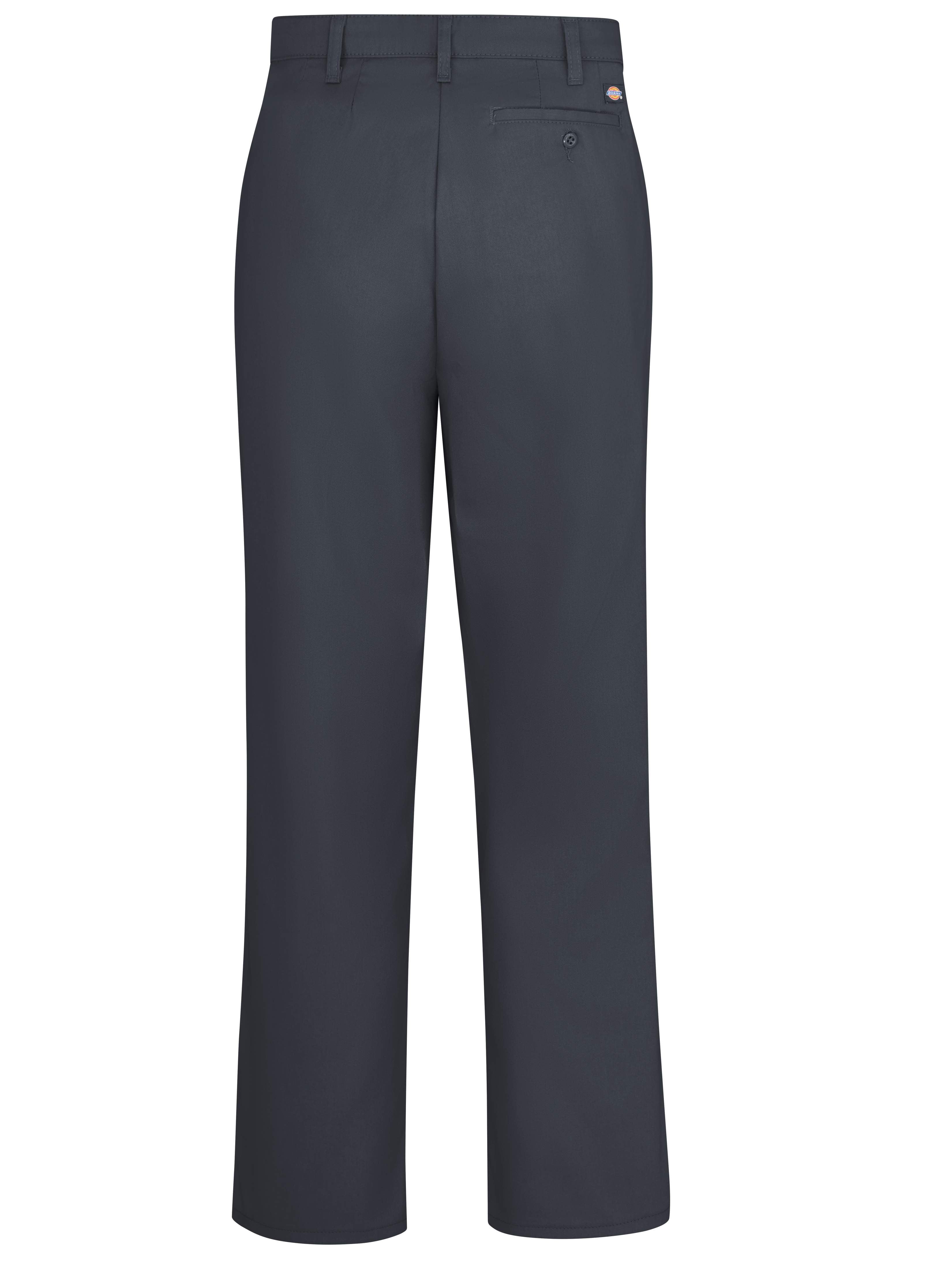 Dickies' Women's Premium Relaxed Straight Flat Front Pants sit slightly below the waist and have a relaxed fit that offers more room around the seat and thigh. The pants feature wrinkle resistance, easy-care stain release and fade resistance. The premium construction through rise allows for shape and comfort, while the stretch interlining in the waistband provides additional comfort.