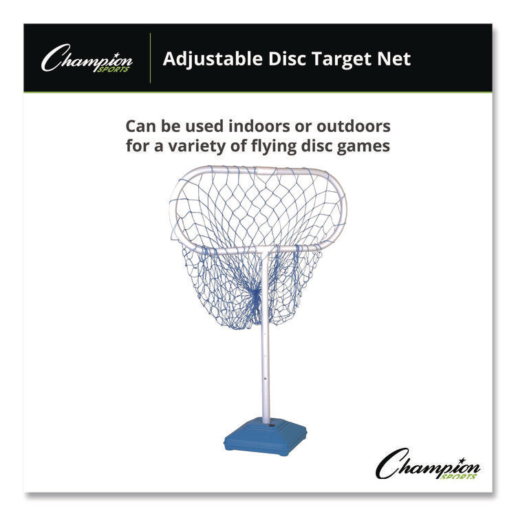 Use the Champion Sports Disc Target Net indoors or outdoors for a variety of flying disc games. The height of the net can be adjusted from 24" to 36", and the plastic base can be filled with water or sand for greater stability. Have fun while practicing your aim! Length: 30"; Width: 12"; Diameter: 1.63"; Material(s): Plastic.