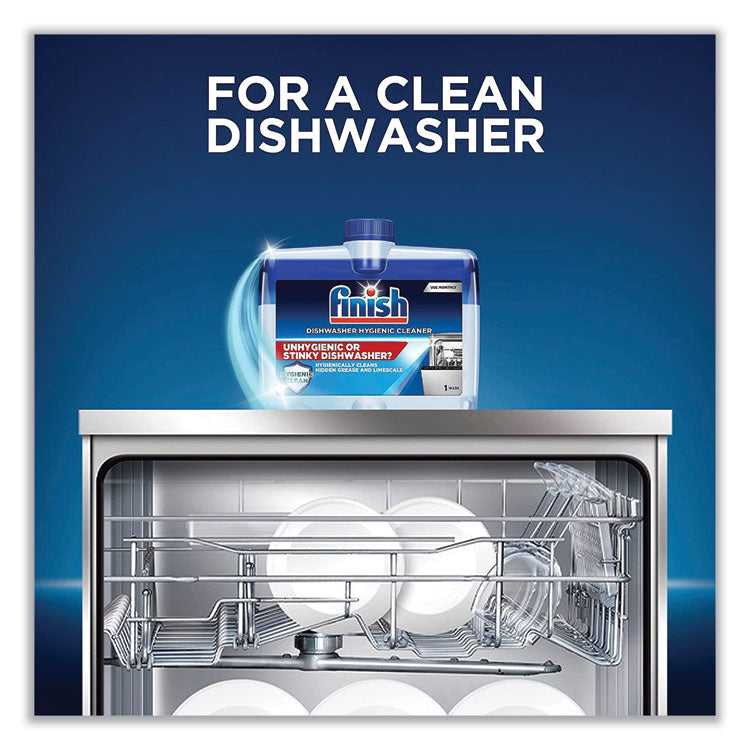 Finish Dishwasher Cleaner intensively cleans grease and limescale from even the hidden parts of your machine. Cleans filter, spray arms, pipes and heating element. Works to neutralize unpleasant odors. Use once a month for an amazingly clean, fresh and well-maintained dishwasher. Simply remove the sticker, place upside down and run an empty cycle on the hottest setting. (Minimum 125 F). Safe for septic systems. Application: Automatic Dishwasher Cleaning; Applicable Material: Automatic Dishwashing Machines; Chemical Compound: Citric Acid; Dirt Types: Grease; Limescale; Mineral Build-up.