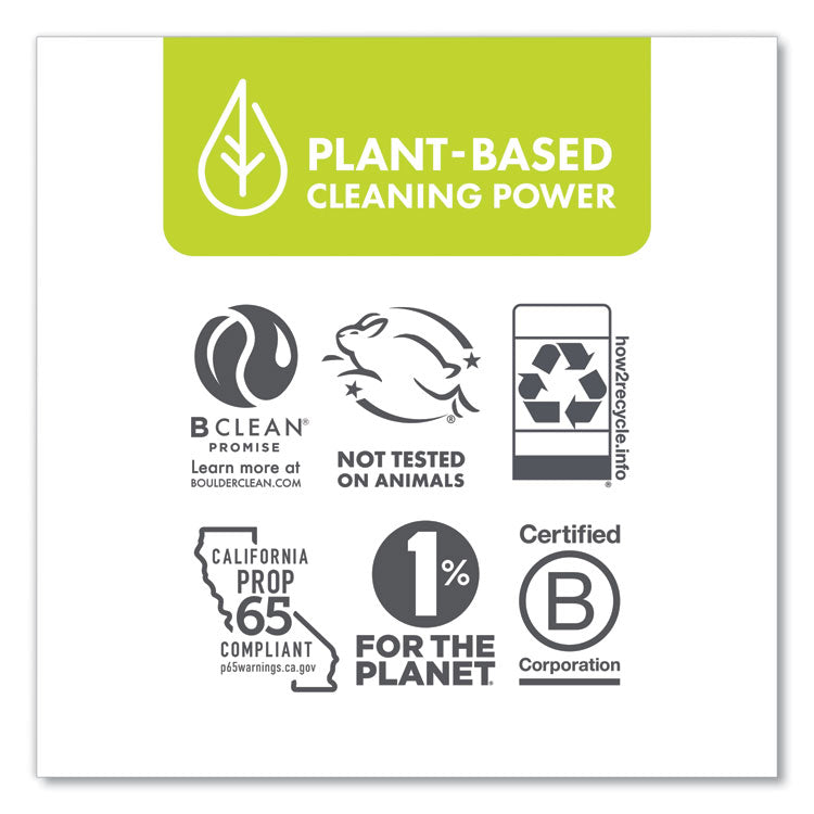 Multitasking at its best! This disinfectant cleans, deodorizes and disinfects in one easy step. No need to rinse, even on food contact surfaces and children's toys. Ready-to-use formula requires no mixing. The active ingredient Thymol kills cold and flu viruses on hard, non-porous surfaces and eliminates 99.9% of household germs and allergens. It dries streak-free and leaves no residue. Free from harsh chemicals, this plant-powered lemon scented formula is safe to use around kids and pets. Application: Disinfectant/Sanitizer; Applicable Material: Chrome; Glass; Glazed Porcelain; Glazed Tile; Hard Non-Porous Surfaces; Metal; Mirrors; Plastic; Sealed Granite; Stainless Steel; Vinyl; Chemical Compound: Water; Thymol; Citric Acid; Pelargonic Acid; TEA-Lauryl Sulfate; Ammonium C6-10-alkyl Polyoxyethylene Sulfate; Hexylene Glycol; Isopropanol; Lemon Fragrance; Dirt Types: Allergens; Bacteria; Cockroach Debris; Dust Mite Debris; Eshericha Coil; Feline Calicivirus; Herpes Simplex; Household Dirt; Human Immunodeficiency Virus; Human Rotavirus; Influenza A3; Methicillin Resistant Staphylococcus Aureus (MRSA); Pet Dander; Pollen Particles; Pseudomonas Aeruginosa; Respirator Syncytial Virus; Salmonella Enterica; Vancomycin Resistant Enterococcus Faecalis; Viruses.