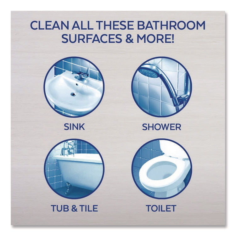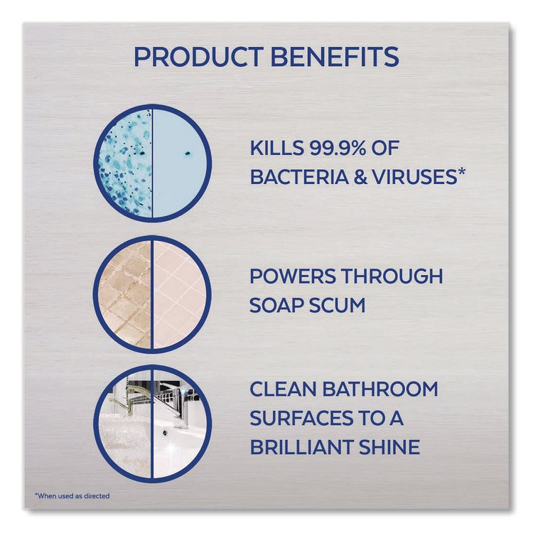 Lysol Brand Disinfectant Bathroom cleaner trigger cleans to a brilliant shine. Tackles tough cleaning challenges like lime scale and soap scum. Wipes away dirt and grime with little or no scrubbing. Kills 99.9% of viruses and bacteria when used as directed. Leaves your bathroom smelling clean and fresh. For use on shower doors, tubs, glazed tile, vanity tops, sinks and chrome fixtures. Application: Disinfectant/Cleaner; Applicable Material: Ceramics; Enamel; Fiberglass; Finished/Sealed Wood; Laminates; Metal; Plastic; Sealed/Engineered Stone; Vinyl; Chemical Compound: Citric Acid; Dirt Types: Bacteria; Lime Scale; Mildew; Soap Scum; Viruses.