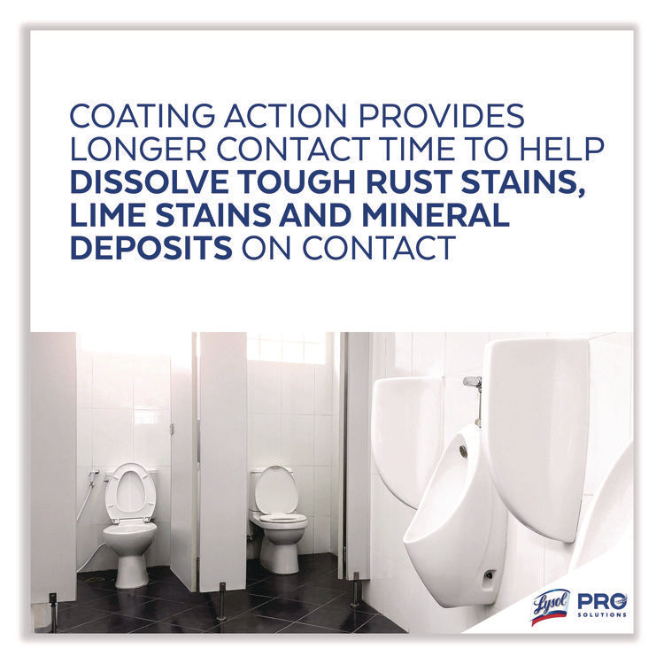 Clean, disinfect, and deodorize urinals and toilet bowls to give guests a clean bathroom experience. Meet staff and customer expectations around cleanliness. Optimize restroom cleaning time with a powerful formula that works on the toughest toilet stains in seconds. Remove hard water deposits with the thick 9.5% hydrochloric acid formula that adheres to stains for better cleaning and coats the bowl above and below the waterline. Kills 99.9% of viruses and bacteria when used as directed. Elevate restroom experiences throughout facilities for customers and staff with a powerful cleaning formula that helps leave surfaces shiny. Will not harm plumbing or septic systems. Application: Toilet & Urinal Cleaner; Applicable Material: Bidets; Porcelain Surfaces; Toilets; Urinals; Chemical Compound: Hydrochloric Acid; Dirt Types: Grime; Mildew; Mineral Scale; Mold; Organic Matter; Soil; Stains.