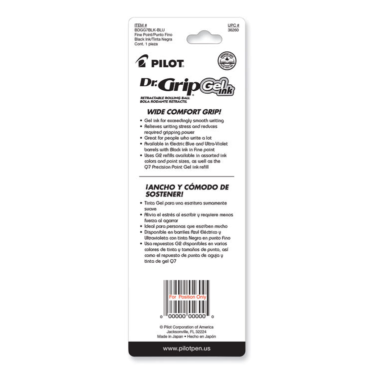 Dr. Grip Gel Pen, Retractable, Fine 0.7 mm, Black Ink, Translucent Blue Barrel