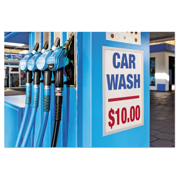 DURAFRAME® Self-Adhesive Sign Holders from DURABLE® are the go-to solution for effortless professional signage display. Easily showcase important information on windows, glass doors, or any smooth, solid surface with these dual-sided frames, instantly grabbing attention and effectively conveying your message right where you need it. The double-sided visibility displays two messages simultaneously for maximum impact. Perfect for storefronts, conference rooms, or any area where signage needs to be seen from inside and outside. Keep your messaging up to date with the innovative flip-up magnetic frame. This unique design means you can update promotions, announcements, safety information, or directional signage without any hassle. Simply lift the frame, swap out your content, and secure it back in place with the magnetic closure. This keeps your signage fresh, relevant, and engaging for your employees and customers. With no bulky mounting hardware or unsightly tape, these sign holders have a clean and modern appearance. DURAFRAME's self-adhesive backing securely adheres to any smooth, solid surface, and can be repositioned without leaving behind any residue, giving you the flexibility to adjust your signage as needed. Tailor your signage to fit your unique space perfectly by placing DURAFRAME in portrait or landscape orientation. Ideal for fast-paced and high-traffic environments such as retail stores, restaurants, hotels, offices, warehouses, healthcare facilities, and manufacturing plants, DURAFRAME Self-Adhesive Sign Holders offer practicality and versatility for your signage needs. Frame Color: Silver; Size: 11 x 17; Insert Size: 11 x 17; Material(s): PVC.