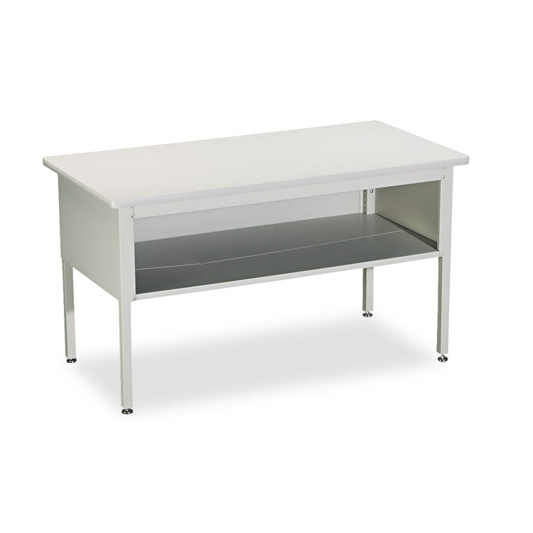 Perfect for all of your mailroom needs, this heavy-gauge steel base supports up to 500 lbs on extra-thick 1.5" legs. Height-adjustable from 28" to 36" for standing or seated comfort. 150 lb capacity bottom storage shelf with 14" clearance. Leveling glides help compensate for uneven floors. Top and Base sold and shipped separately—ORDER BOTH. Color Family: Gray; Base Color: Gray; Overall Width: 60"; Overall Depth: 30".