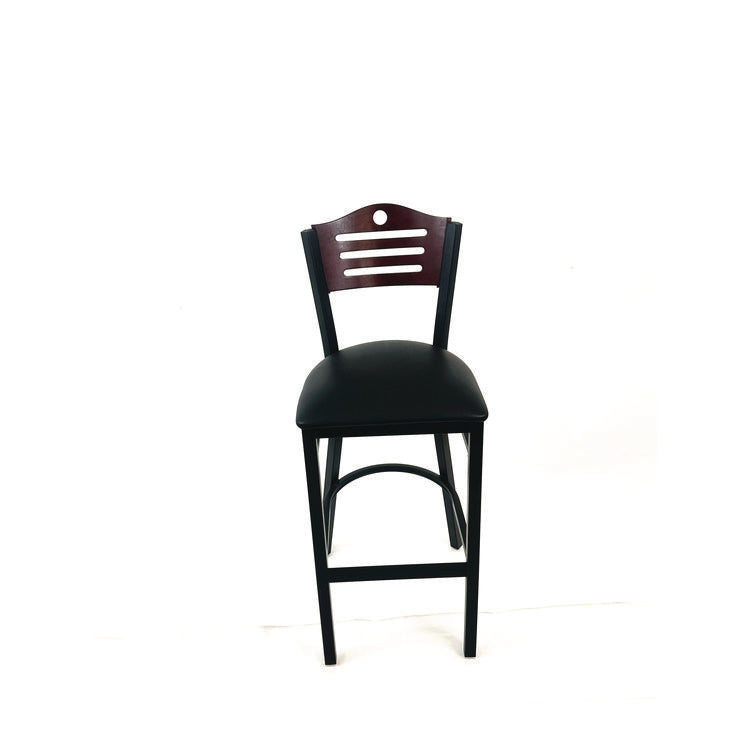 Introducing the perfect seating solution for your home or business-the Eagle Series metal framed barstool with vinyl seat pad. This sleek and modern design is built to provide maximum comfort and durability, all while adding a touch of style to your space. With a sturdy metal frame, this barstool is sure to stand up to even the busiest of environments. The frame is built to last, ensuring that you have a reliable seating option for years to come. The vinyl seat pad is not only comfortable, but also easy to clean and provides a soft and supportive surface that is perfect for extended use making it ideal for high-traffic areas. Whether you're using this barstool in your dining room, kitchen, or bar area, it's sure to impress and is the perfect addition to any indoor space. Recommended Application Area(s): Breakroom & Foodservice; Seat Color: Black; Back Color: Dark Mahogany; Color Family: Black.