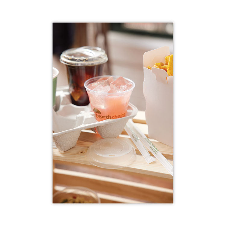 EarthChoice Carry-Safe Beverage Carrier, 8 oz to 32 oz, Four Cups + Food Tray, Natural, 300/Carton
