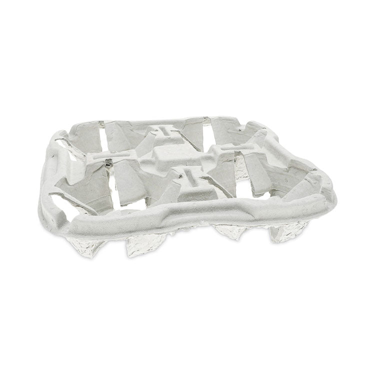 EarthChoice® fiber cup carriers are extremely durable and made with 100% recycled paper. Made with globally sourced materials. Ready to use with no set up required. Makes transporting on the go beverages simple and mess free. Features a sturdy multi compartment design to accommodate up to four cups ranging from 8 to 46 oz. Cup Carrier-Four-cup carrier, 8 oz to 46 oz. Cup Size (Range): 8 oz to 46 oz; Cup Trays Capacity (text): Four Cups; Material(s): Molded Fiber; Color(s): Natural.
