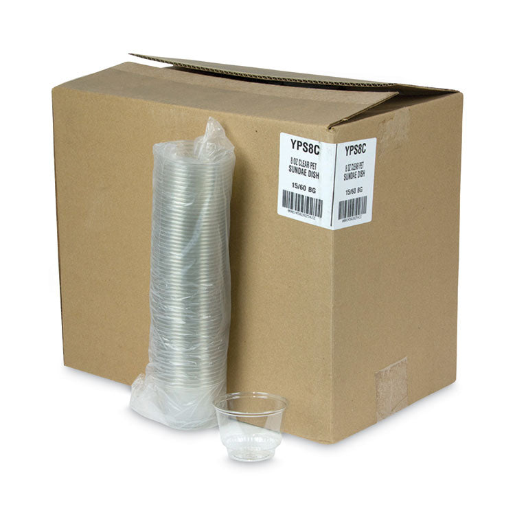 EarthChoice Recycled Clear Plastic Sundae Dish, 8 oz, 4" Diameter x 3" h, Clear, 60/Bag, 15 Bags/Carton