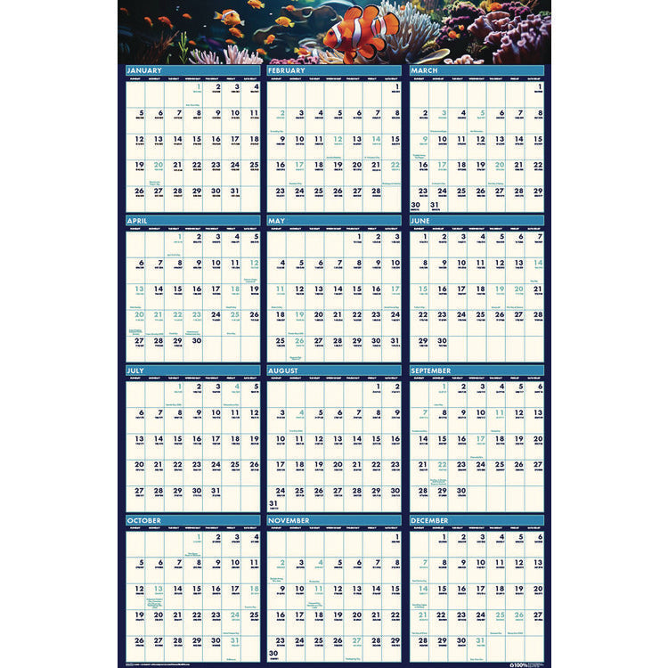 Earthscapes Recycled Reversible/Erasable Yearly Wall Calendar, Sea Life Photos, 24 x 37, White Sheets, 12-Month(Jan-Dec):2025