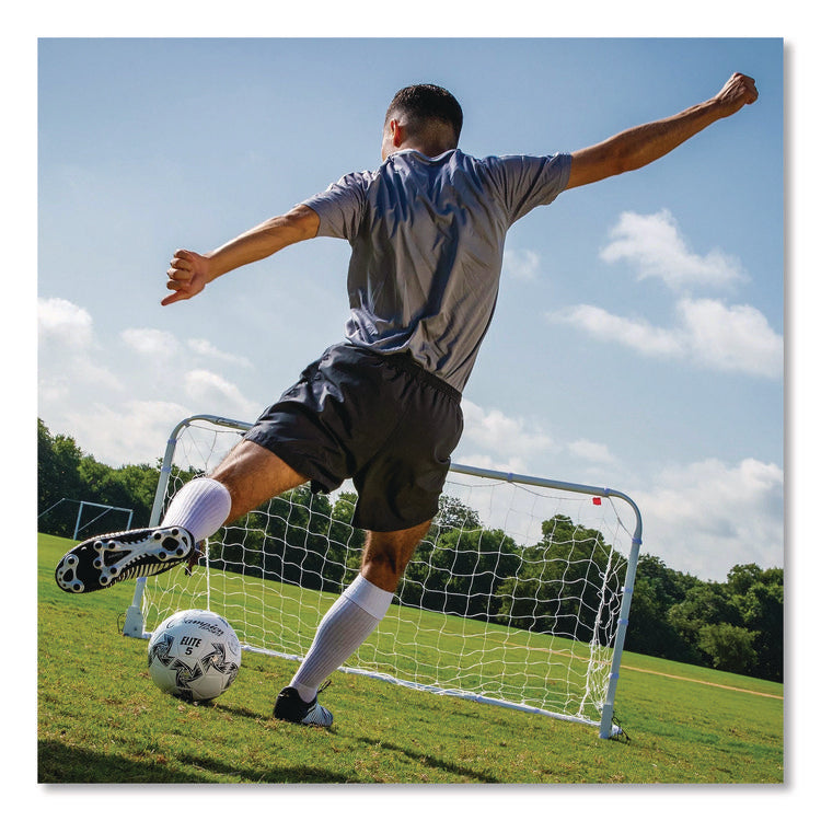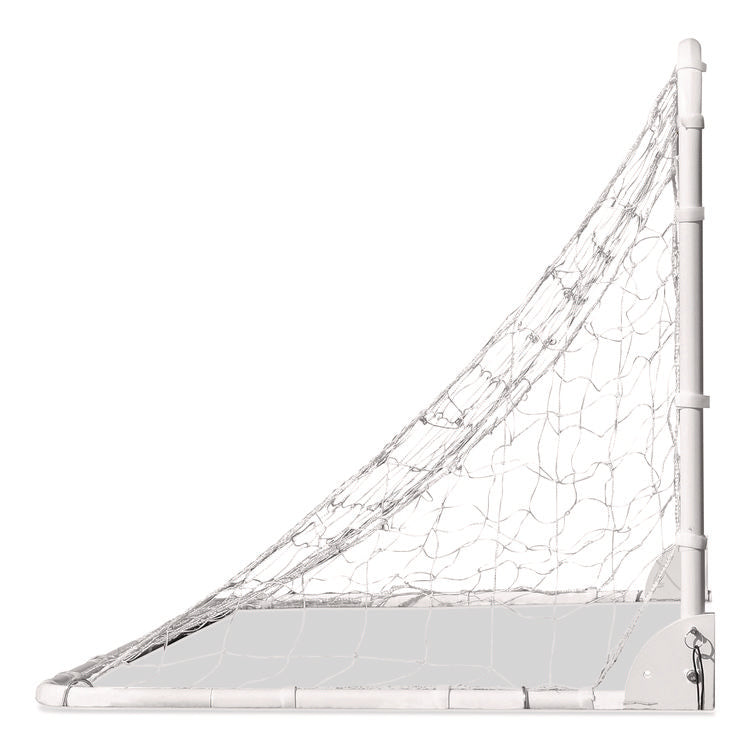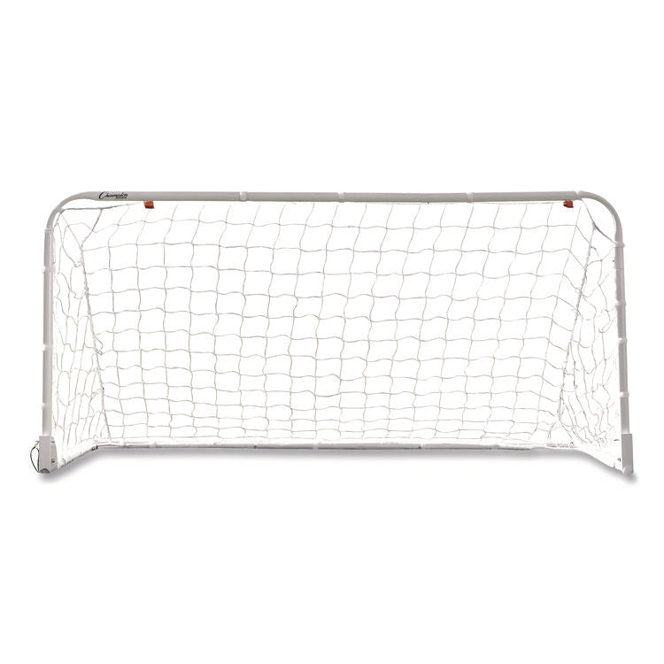 The Champion Sports Easy Fold Soccer Goal is designed to be easy to set up and transport. Made with 1.5" welded steel tubing and heavy-duty polyethylene netting, this soccer goal is durable enough to withstand regular use in various indoor/outdoor environments. Additionally, the easy-fold hinges and locking pin system make this soccer net easy for anyone to set up or take down quickly. Once play is done, the net folds down neatly for easy storage and transportation. Length: 6 ft; Width: 3 ft; Material(s): Polyethylene (Net); Steel (Frame); Playground/Gymnasium Sets Type: Folding Soccer Goal.