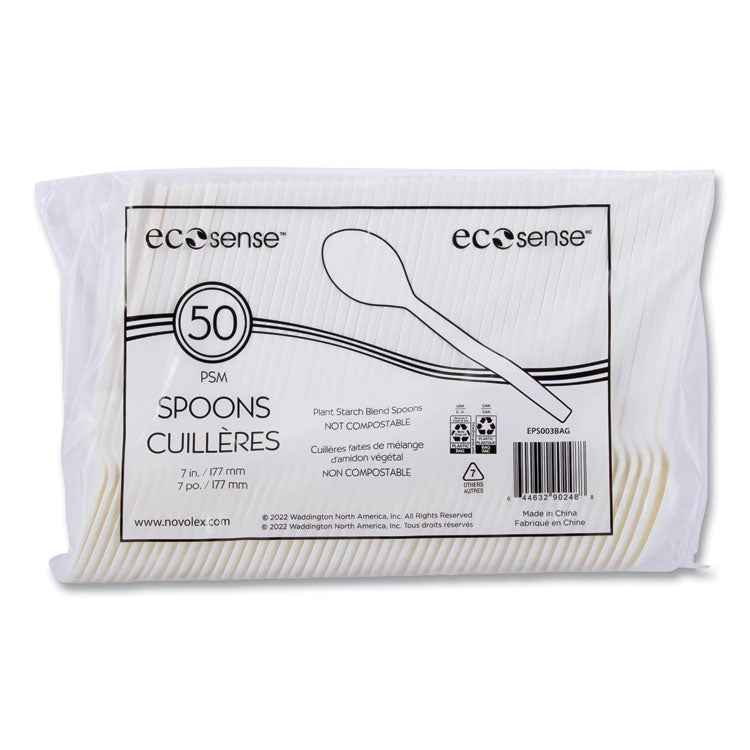 EcoSense Renewable Plant Starch Cutlery, Spoon, Plastic, Cream, 50/Pack, 20 Packs/Carton