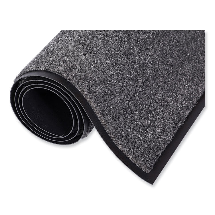 P.E.T. fiber surface wiper mat. Vinyl backing for durability and optimal floor surface protection. Quality plush surface wipes and dries shoes and grasps fine dust. Retains up to 20% more moisture than standard olefin wiper mats. Prevents floor deterioration and trip hazards due to slippery entrances and corridors. Use in combination with the EcoPlus+ wiper/scraper mat for best results. Mat Type: Wiper Mat; Application: Indoor; Width: 24"; Length: 36".