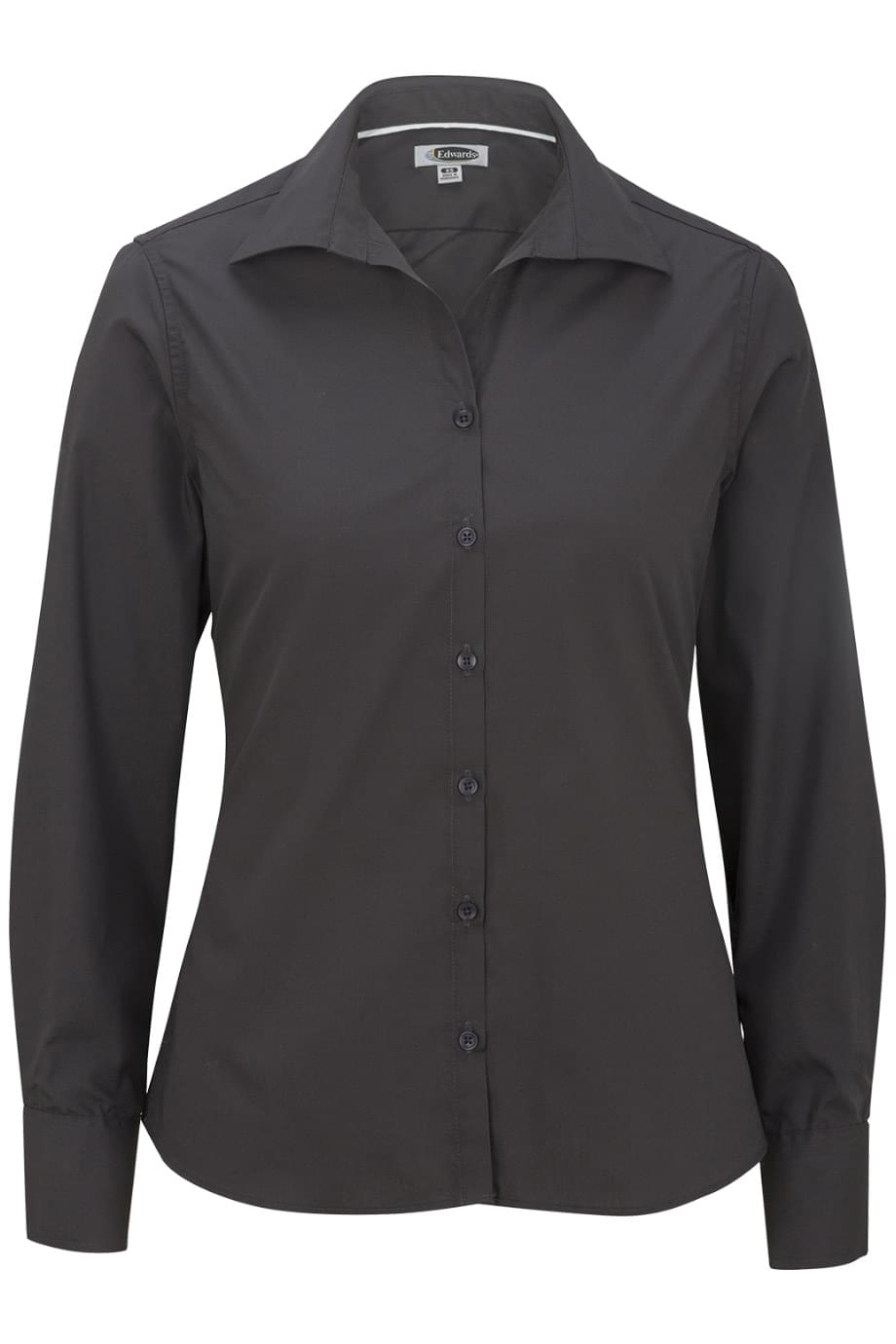 Edwards This ladies' casual poplin feels like a dress blouse. Stands up to demanding wear and is offered in a plethora of colors. Great for restaurants; delivery services or customer service. Embroiders well. Men’s companion is #1295.