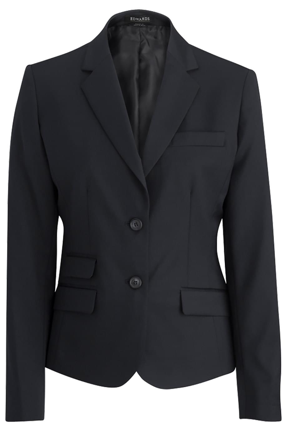 Edwards This ladies' waist-length suit coat is perfect for upscale programs in the hospitality market. Feel your best in this tailored fit suit coat featuring luxury fabric and comfort stretch. Companion style is #3530