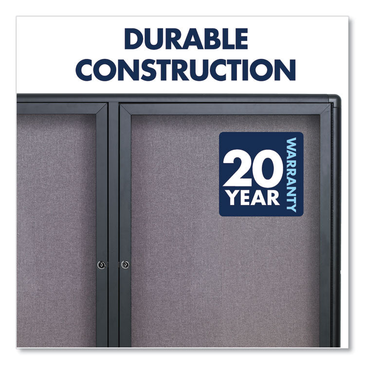 Enclosed Indoor Fabric Bulletin Board with Two Hinged Doors, 48" x 36", Gray Surface, Graphite Gray Aluminum Frame