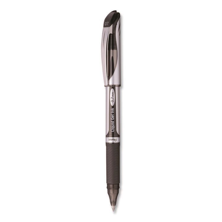 EnerGel Deluxe Gel Pen, Stick, Medium 0.7 mm, Black Ink, Silver/Black Barrel, Dozen