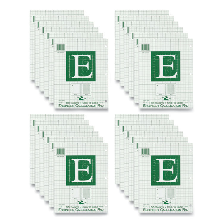 Engineer Pad, (1.25" Margin), Quad Rule (5 sq/in, 1 sq/in), 100 Light Green 8.5 x 11 Sheets/Pad, 24/Carton