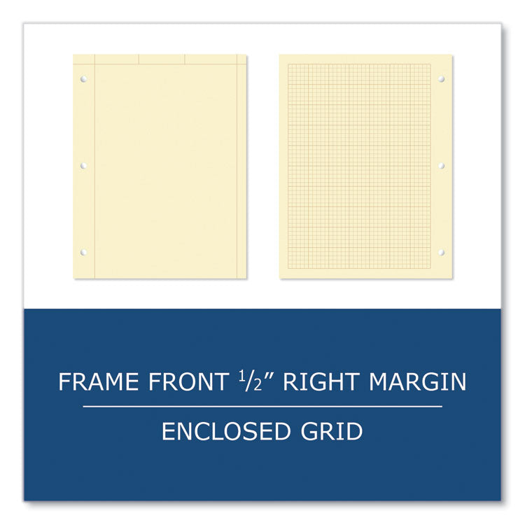 Excellent pad for usage in engineering classes and labs. Smooth writing paper is plain, except for printed outline box on top of sheet, and has 5 square/inch grid layout printed on back of sheet. Back grid shows through to front as dimensional guide for drawings and layouts. 34 pt chipboard backs add stability. Glued along 8.5" (top) edge and 3-hole punched to fit in standard 3-ring binders. Each pad is poly-wrapped. Pad-Binding Type: Glued; Pad-Binding Edge: Top; Sheets per Pad: 100; Sheet Size (Bound-Side First): 8.5 x 11.