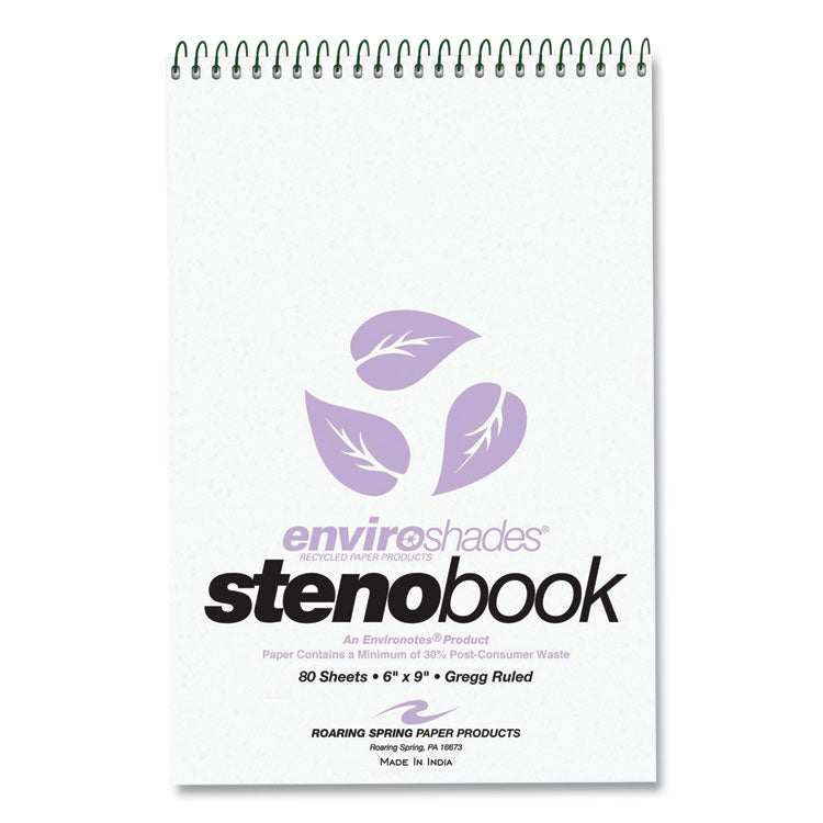 EnviroShades Steno Pad, Gregg Rule, White Cover, 80 Orchid 6 x 9 Sheets, 24 Pads/Carton