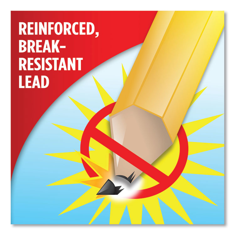 These woodcase pencils have reinforced, break-resistant lead when writing, so they need less sharpening and last longer. Pencils feature 100% latex-free erasers. Retractable: No; Eraser (Yes/No): Yes; Graphite Color(s): Black; Color Family: Black.