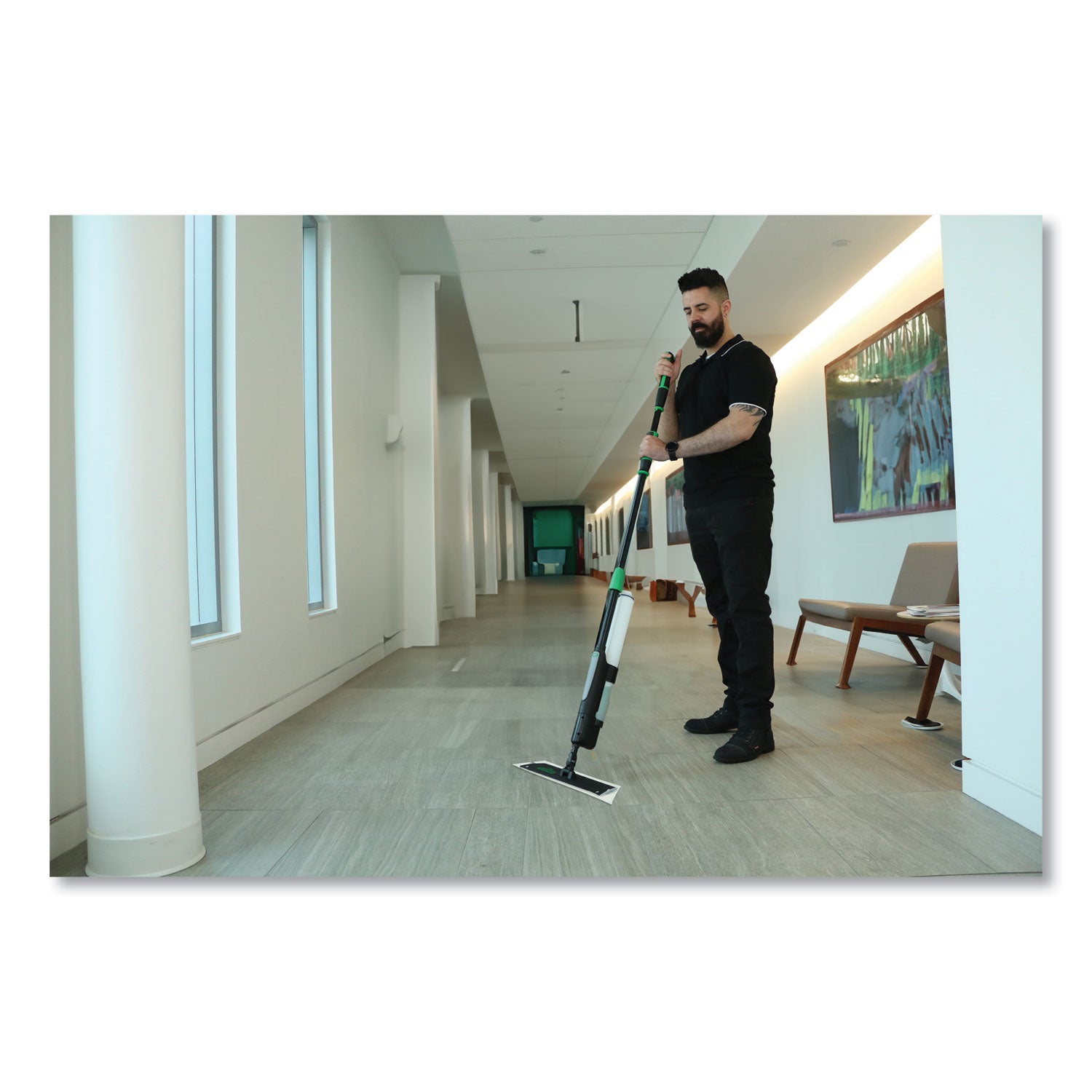 This finishing pad is made of lint-free microfiber. Evenly and effectively distributes floor finishing product. Washable up to 300 times. The Unger Excella floor care system is the safest and most efficient flat mopping and floor finishing option on the market. Mop Head Type: Finishing Pad; Application: Applying Floor Finish; Mop Head Style: Rectangular; Mop Head Size: 20".