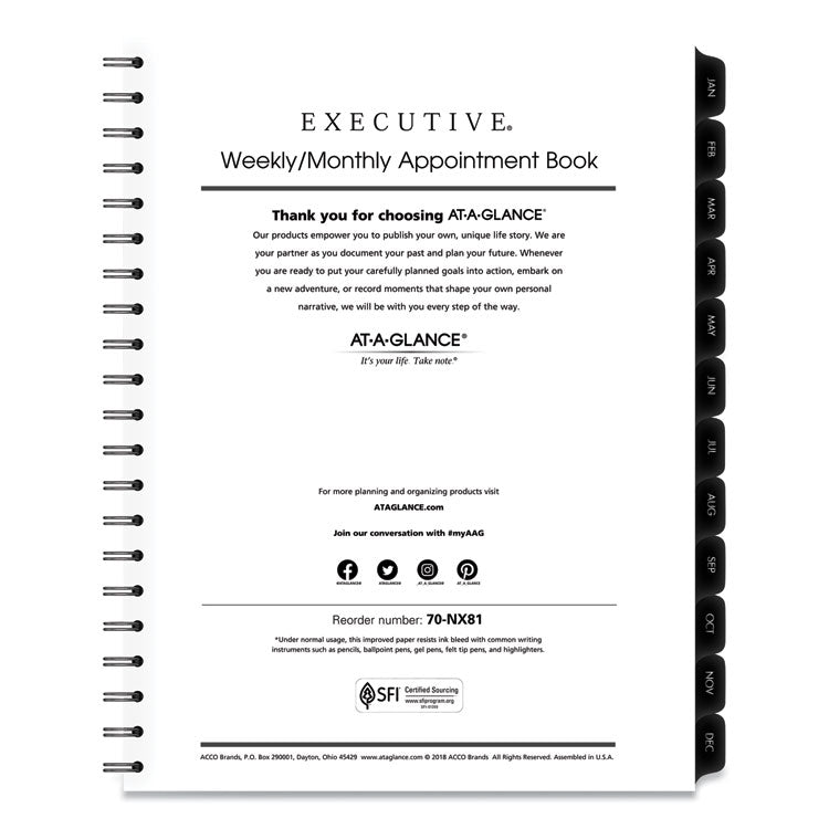 Executive Weekly/Monthly Planner Refill with 15-Minute Appointments, 11 x 8.25, White Sheets, 12-Month (Jan to Dec): 2025